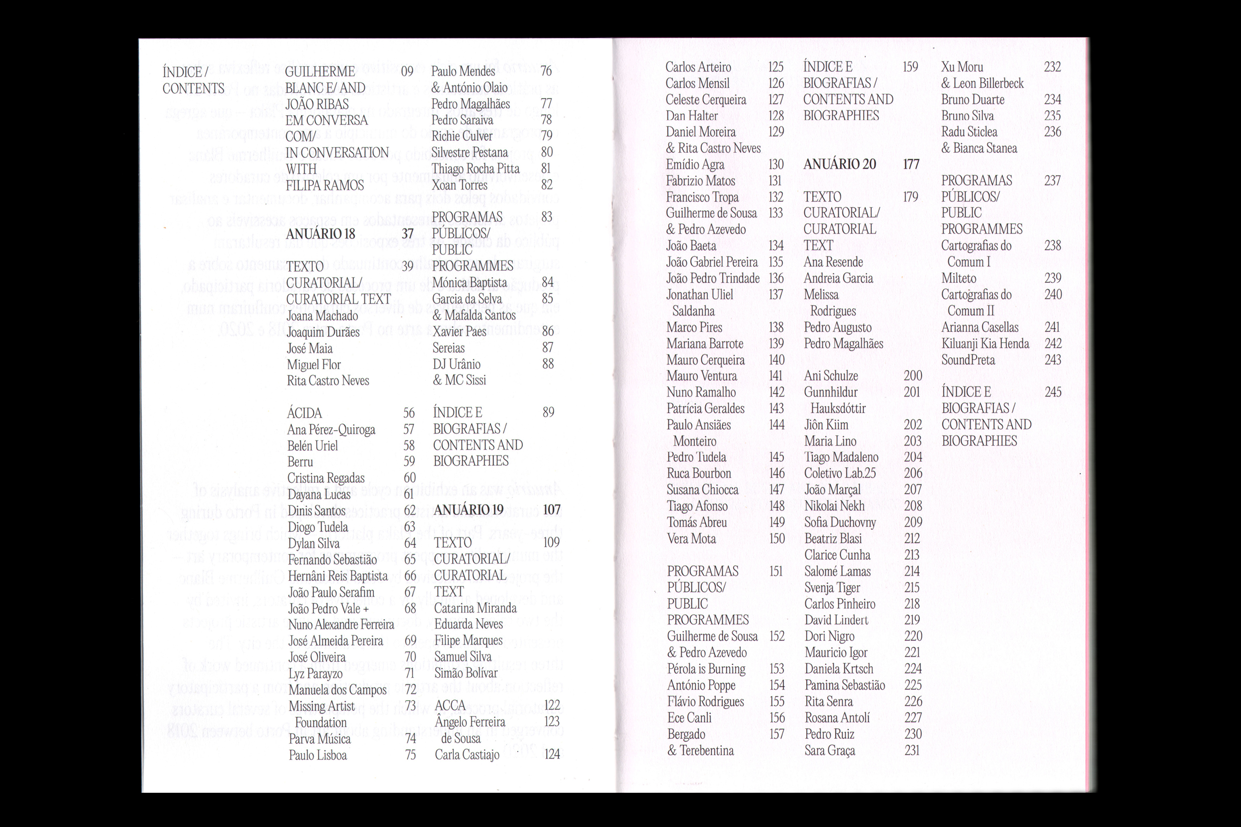 For three editions, between 2019 and 2021, the Anuário project took the form of exhibitions and events in different spaces in Porto, reflecting on the curatorial and artistic practices developed in the city over the course of each year. This project has been converted into a publication bringing together the memory of the proposals of more than 100 artists and collectives
