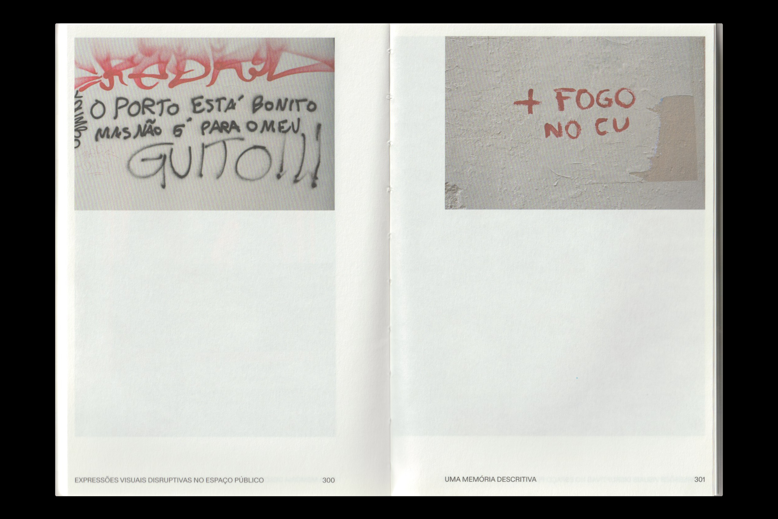 Resulting from an Exploratory Project (CICANT/FCT), the book Expressões Visuais Disruptivas no Espaço Público (Disruptive Visual Expressions in Public Space) was based on a photographic survey of inscription marks in the public space of the city of Porto (graffiti, stencil, sticker, collage, drawing, painting, written word).